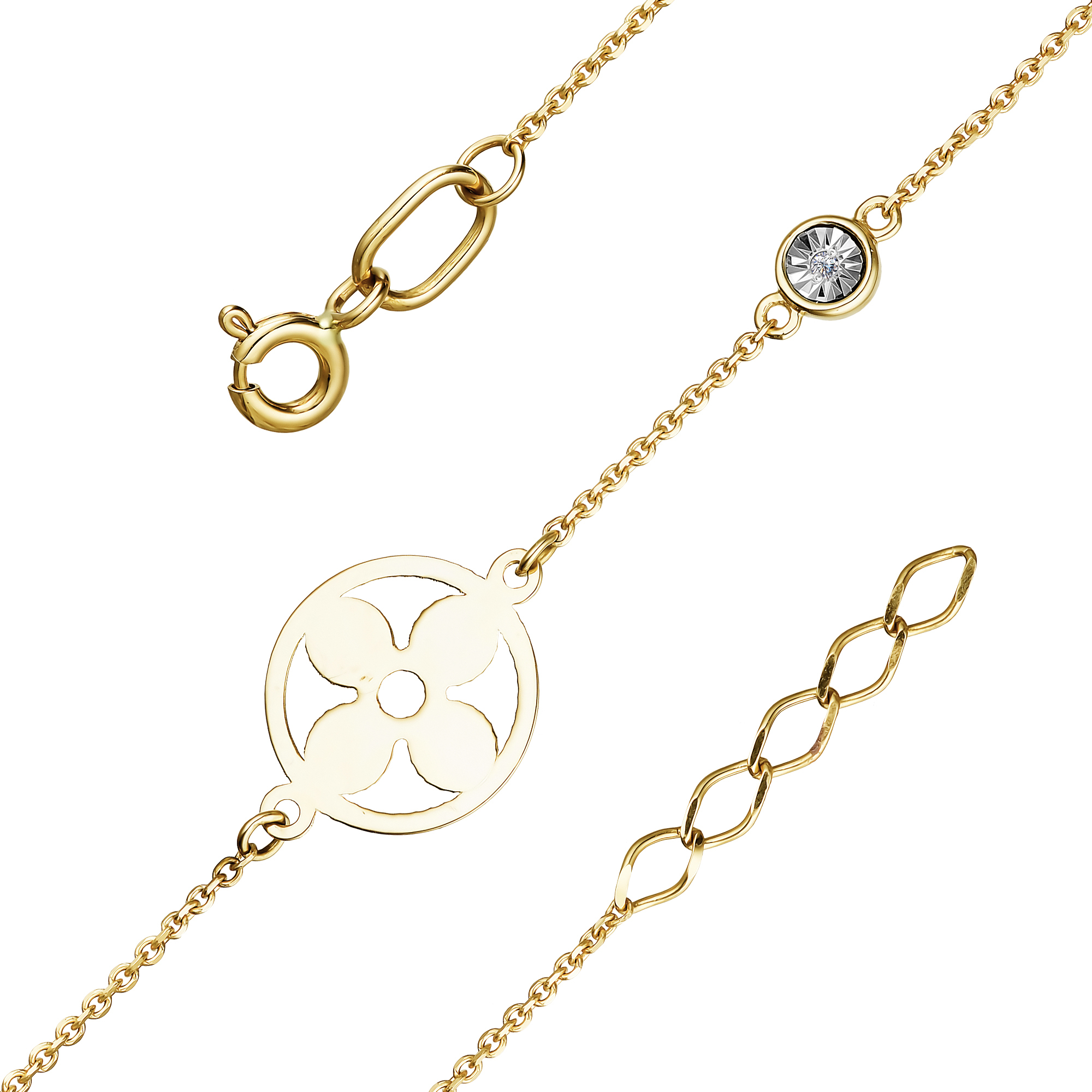 Браслет из желтого золота (Au 585) с роскошным бриллиантом – идеальный выбор для подчеркивания вашего статуса и изысканного вкуса! - Блеск натурального бриллианта притягивает взгляды окружающих; - Долговечность и прочность благородного металла; - Идеальный подарок себе любимой или близким людям; - Стильный аксессуар к любому образу от повседневного до торжественного. Этот браслет станет вашим верным спутником каждый день и символом элегантности!