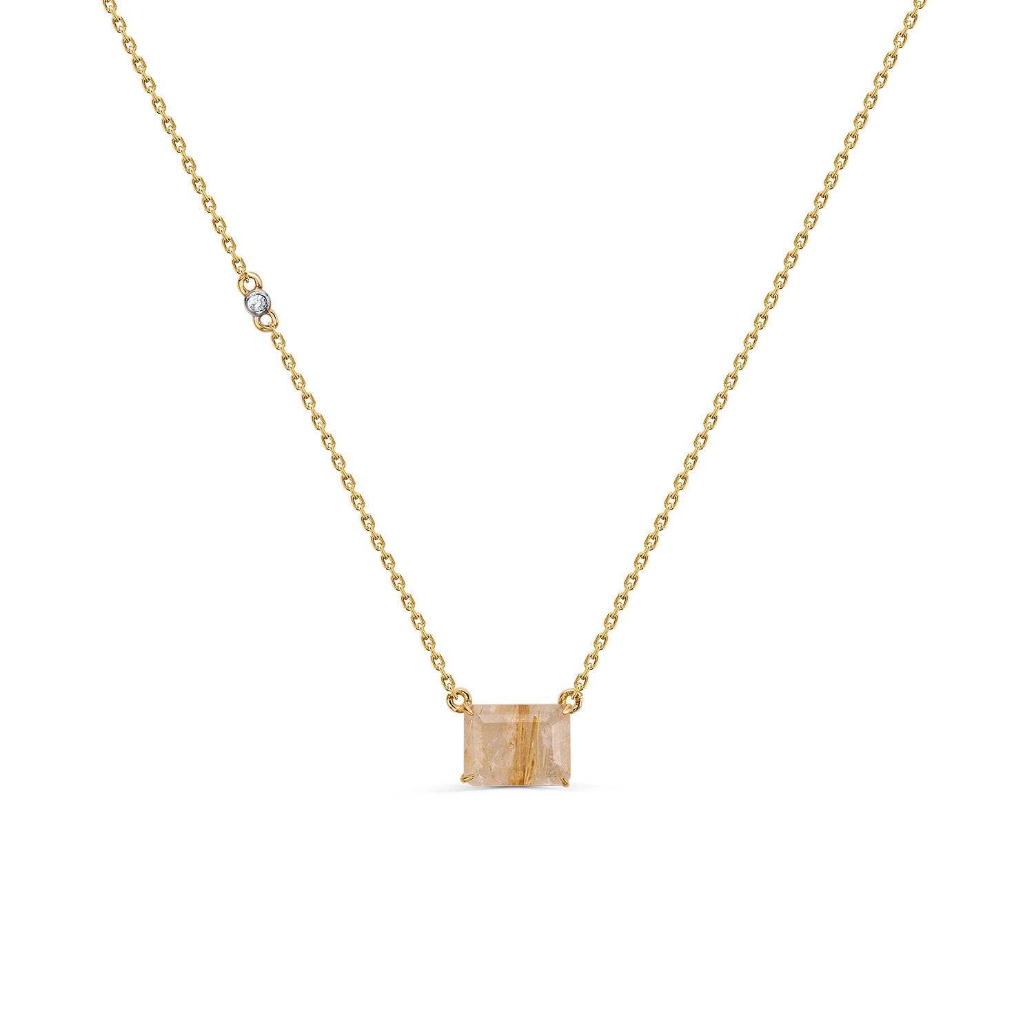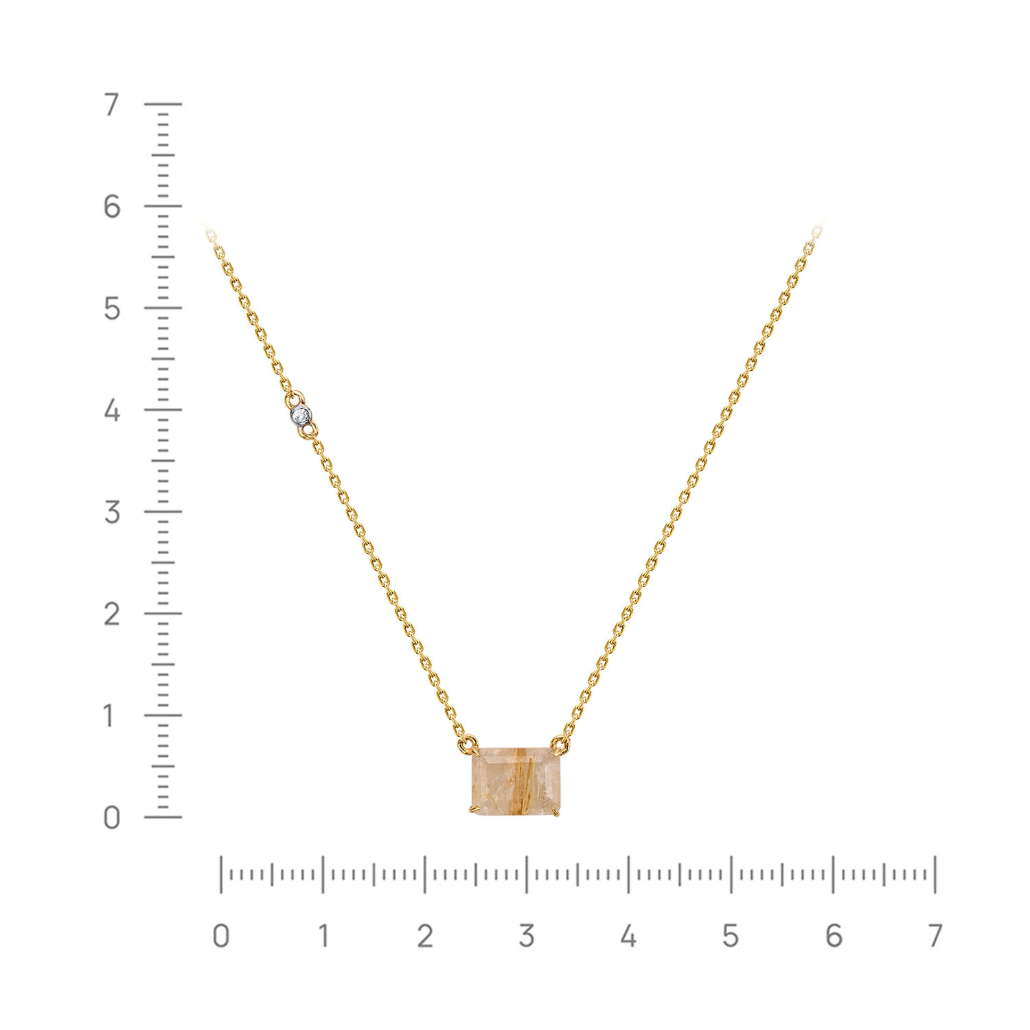 Изумительное колье из золота пробы Au 585 – элегантность и роскошь у вас на шее! Яркие вспышки бриллиантов гармонично сочетаются со сказочным кварцем волосатиком, придавая украшению неповторимый шарм. Это стильный аксессуар подчеркнёт вашу индивидуальность и привлечет восхищенные взгляды. Стильное решение для особых случаев и ежедневного ношения. Ваш идеальный спутник в мире моды и красоты уже ждёт вас!