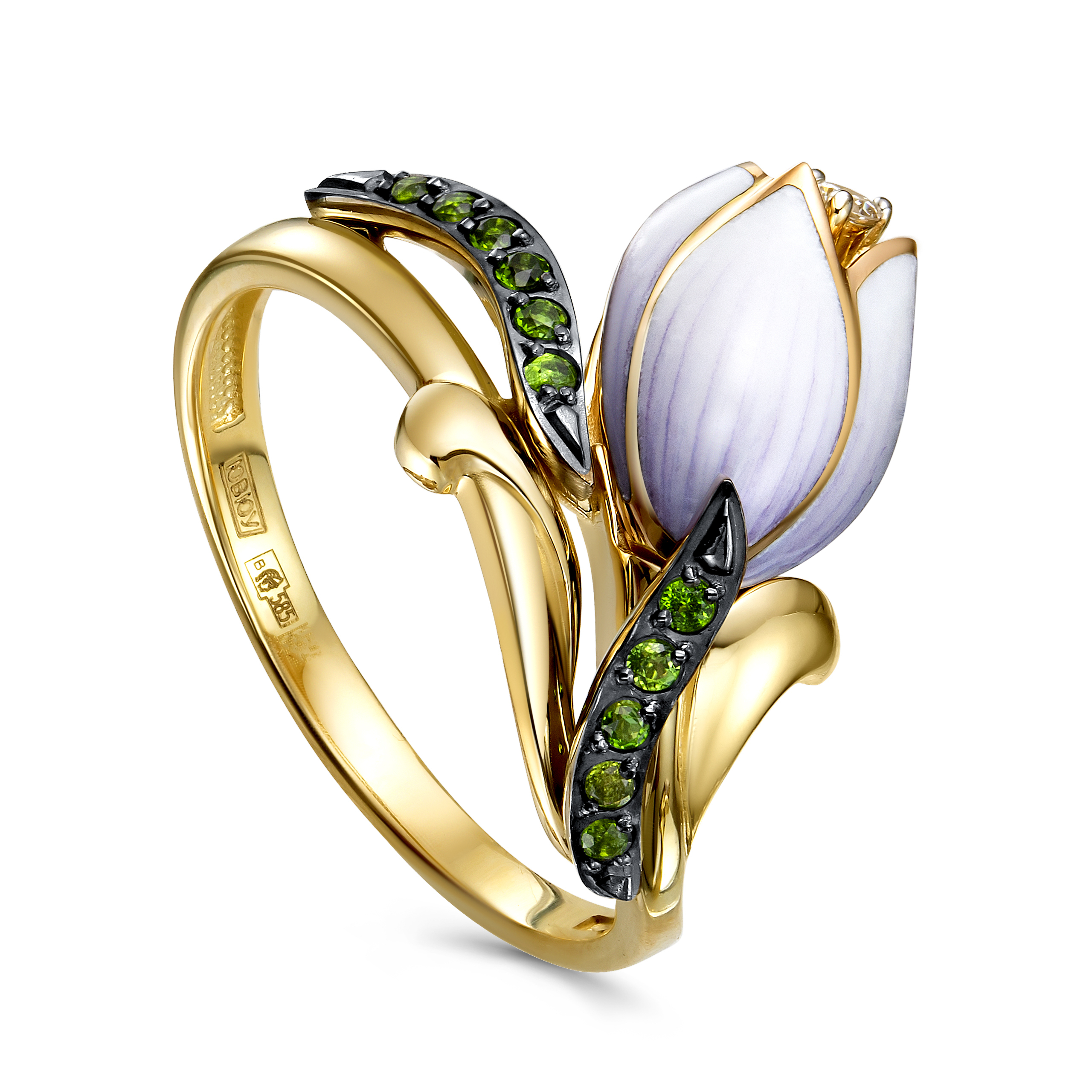 Изумительное кольцо из золота пробы Au 585 украшено роскошным бриллиантом в обрамлении хромдиопсидов – символ гармонии и элегантности! Добавьте к своему образу неповторимое сияние драгоценных камней и изысканность желтого золота. Необычная комбинация цветов камня подчеркнет вашу индивидуальность и станет надежным спутником как для повседневного образа, так и для особого случая. Приятные ощущения от прикосновения благородного металла гарантированы!
