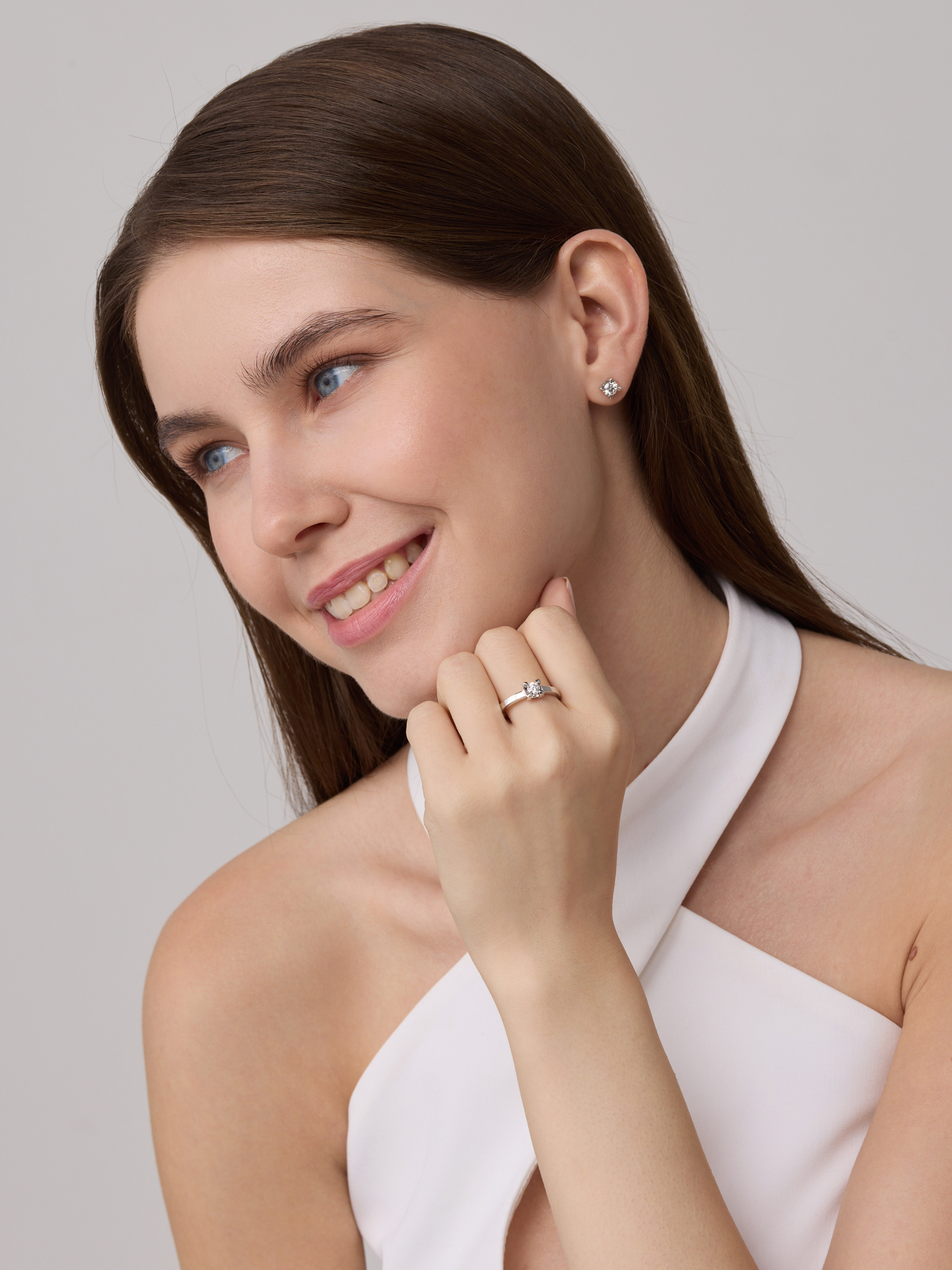 Роскошное кольцо из белого золота (Au 585) с сияющим бриллиантом — идеальный выбор для подчеркивания вашего статуса и утонченного вкуса! Это украшение станет символом любви, элегантности и финансовой стабильности, привлекая восхищенные взгляды окружающих. Носите его как знак успеха или преподнесите близкому человеку в качестве незабываемого подарка. Ваш стиль заслуживает лучшего!