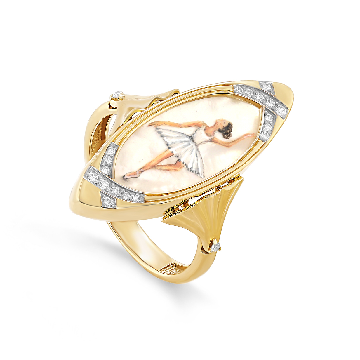 Изумительное кольцо из золота пробы Au 585 сияет элегантностью! Яркие вспышки бриллиантов гармонично сочетаются с нежным блеском перламутра – символ красоты и загадочности природы. Это идеальное украшение подчеркнёт вашу индивидуальность и привлечёт восхищённые взгляды. Стильный аксессуар станет прекрасным подарком себе или близкому человеку. Кольцо изготовлено из высококачественных материалов, обеспечивая комфортное ношение и долговечность.