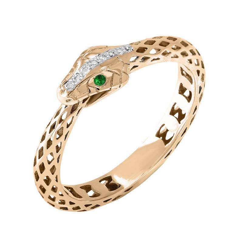 Изящное кольцо из красного золота (пробу Au 585) станет вашим верным украшением! Стилизованное под образ мудрой змеи, оно привлечет восхищенные взгляды изумрудом и бриллиантом — символом власти и чистоты отношений. Носи его как знак внутренней силы и элегантности. Сочетание камней подчеркивает индивидуальность владельца, делая аксессуар идеальным подарком себе любимой или близкому человеку. Храни красоту и стиль вместе с кольцом-змеей от нашего бренда!