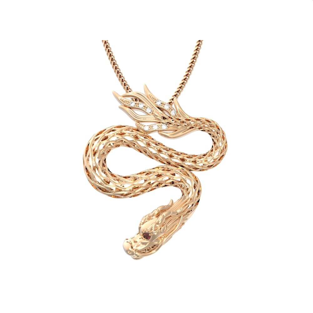 Представляем кулон из красного золота (Au 585), где ограненные рубины и бриллианты сплетаются в изысканный узор вдохновленный грациозностью дракона – символа мудрости и силы. Этот аксессуар подчеркнет вашу индивидуальность и станет надежным оберегом. Сочетание роскоши золота и яркости камней сделает его незаменимым элементом вашего гардероба! Купите сейчас и ощутите магию древнего символа каждый день!