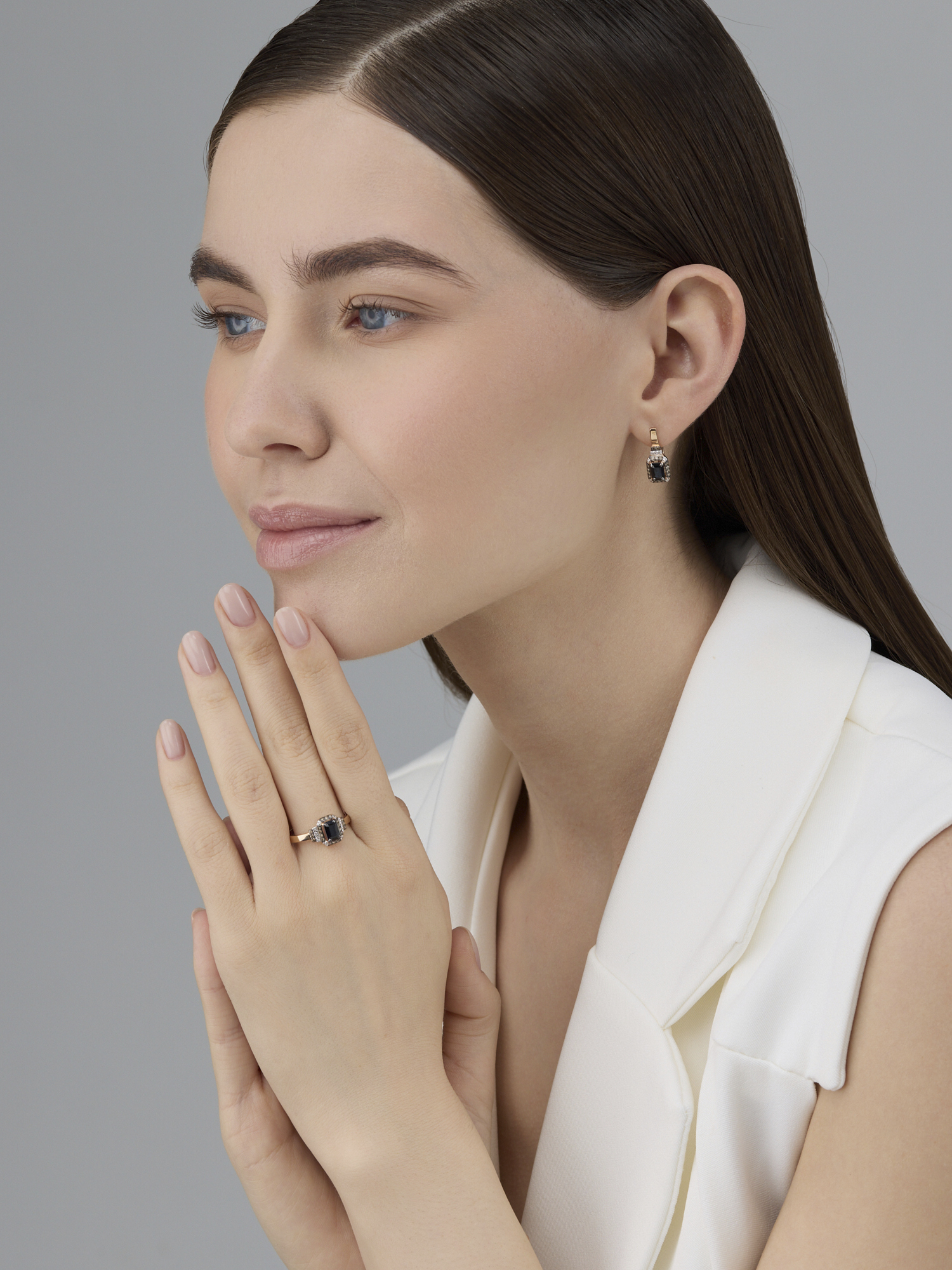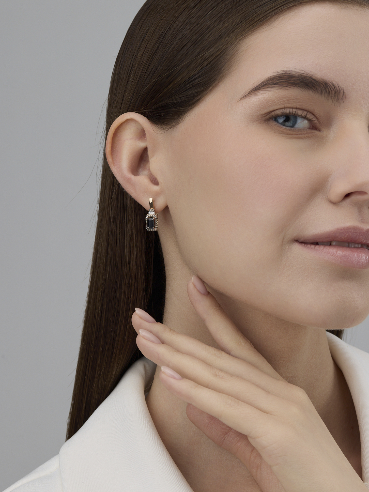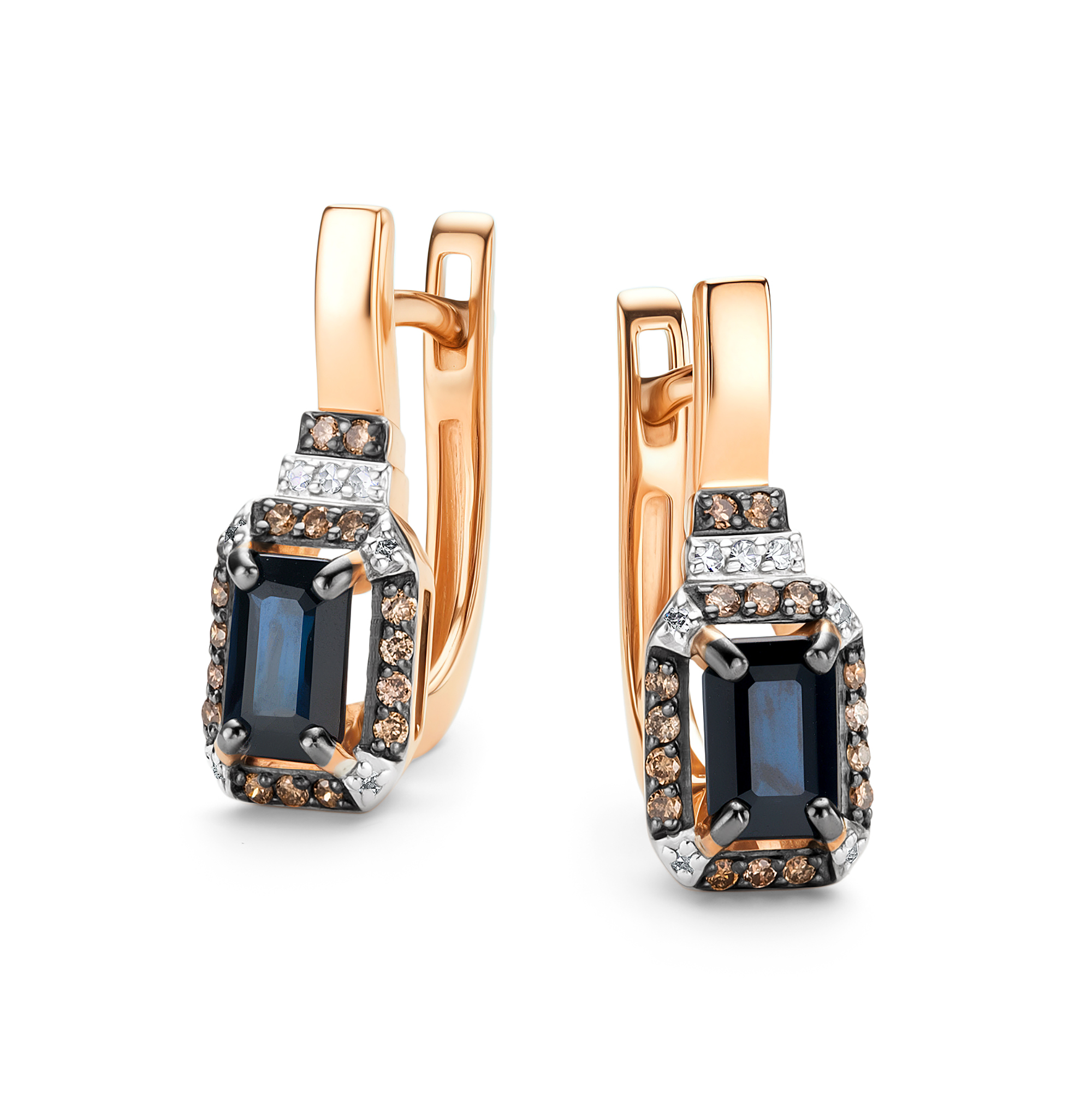 Изумительные серьги из красного золота 585 пробы украсят образ благородством синего сапфира и искристостью бриллиантов! Элегантность классики сочетается здесь с роскошью природных камней – такой аксессуар подчеркнёт вашу индивидуальность и безупречный вкус. Выгодно подчеркнуть стиль деловых встреч, торжеств или вечерних прогулок поможет именно это изысканное украшение! Долговечность, безопасность ношения и неподвластная времени красота – преимущества выбора золотых украшений с драгоценными камнями.