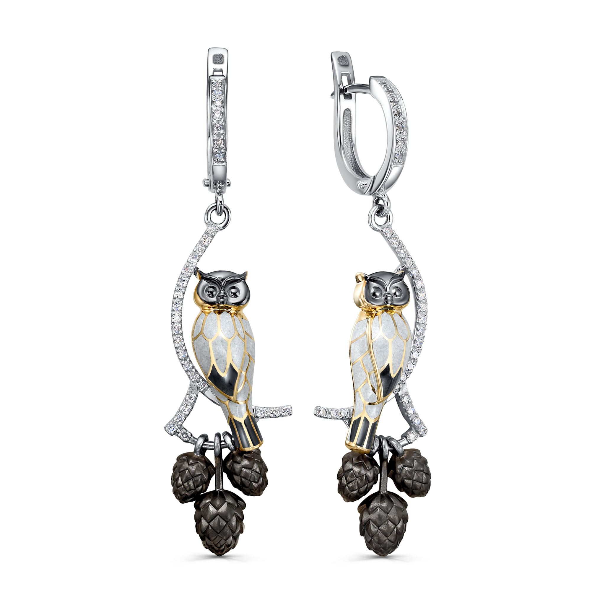 Эти изысканные серьги из белого золота (проба Au 585) украсят образ каждой модницы! Цените красоту природы — изящная игра бриллиантов и чарующая грация сов, придаст взгляду глубину и загадочность. С этими серёжками вы всегда будете выглядеть стильно и роскошно, подчеркивая свой статус и безупречный вкус! Выгодные особенности: - Украшение премиум-класса - Долговечность благородного металла - Блеск натуральных бриллиантов