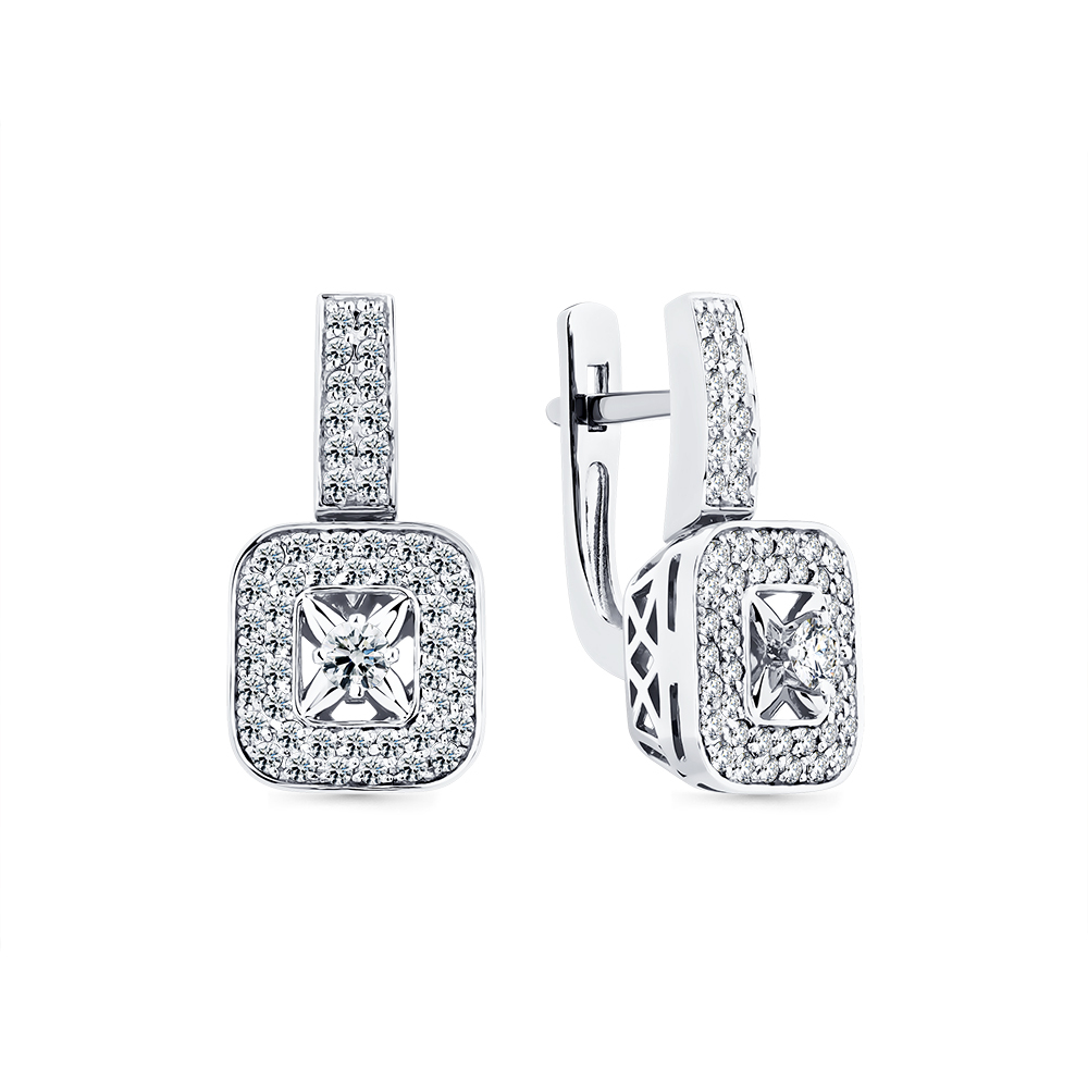 Изумительные серьги из белого золота (проба Au 585) украшенные сверкающими бриллиантами – идеальный выбор для подчеркивания вашего статуса и элегантности! Блеск камней привлечёт восхищённые взгляды, а благородство золотого сплава обеспечит комфортное ношение и долговечность изделия. Такие серьги станут вашим лучшим другом как для вечернего выхода, так и повседневной носки.