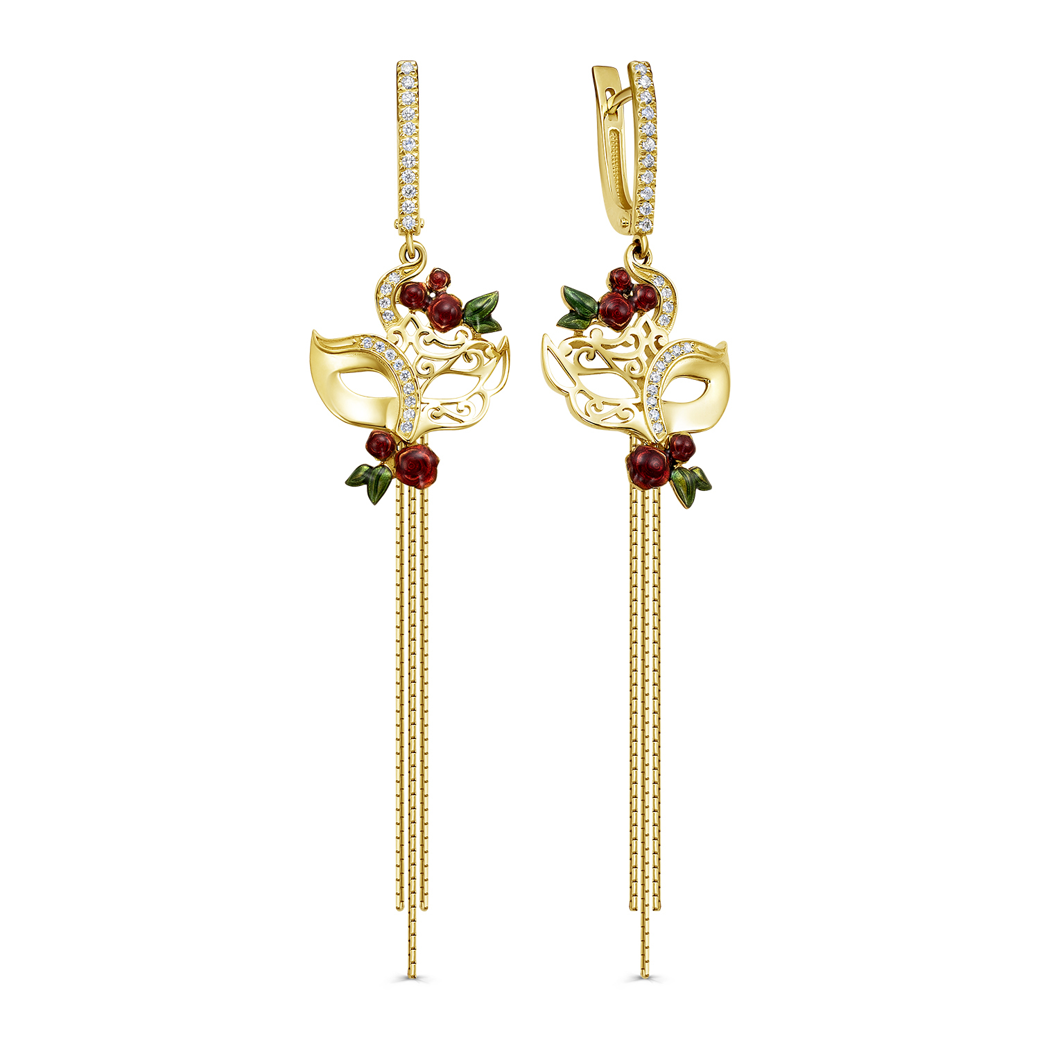 Эти изысканные серьги из желтого золота (проба Au 585) украсят образ любой женщины, подчеркивая её индивидуальность и статус. Центральные бриллианты добавляют блеска и шарма вашему облику, делая вас неотразимой. Серьги станут прекрасным подарком любимой женщине или украшением, которое всегда будет радовать свою обладательницу своей элегантностью и роскошью.