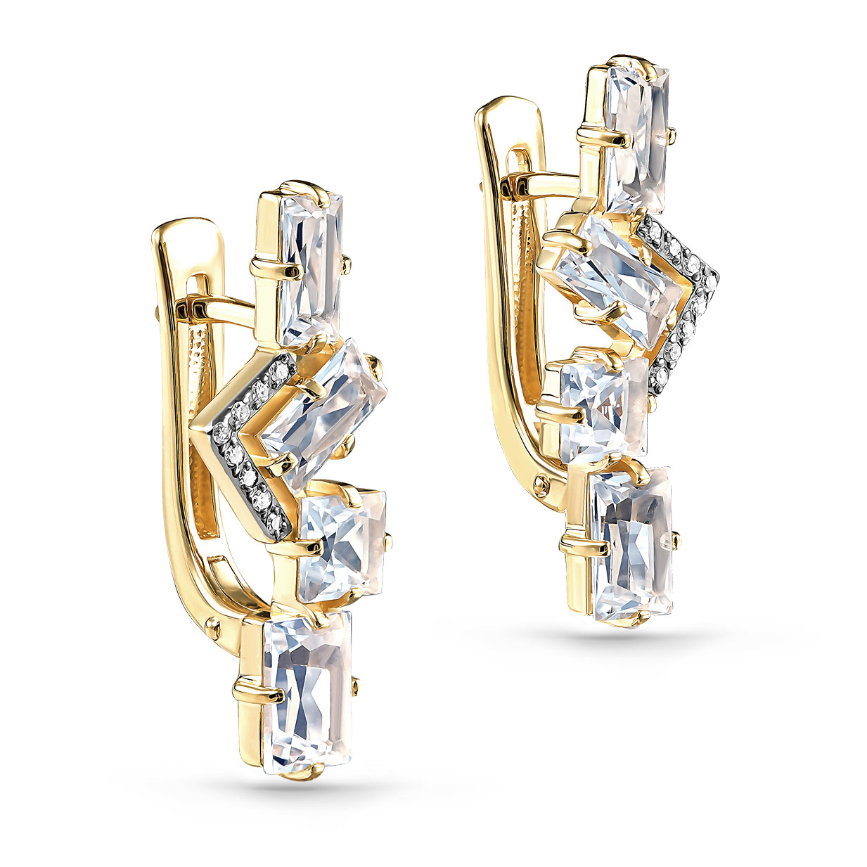 "Серия изысканных серег из золота пробы Au 585 – элегантное сочетание яркости бриллианта и чистоты горного хрусталя! Они подчеркнут вашу индивидуальность, добавят блеска образу и станут универсальным аксессуаром к любому наряду. Выгодно приобретите стильные серьги ручной работы, которые обязательно привлекут внимание окружающих!"