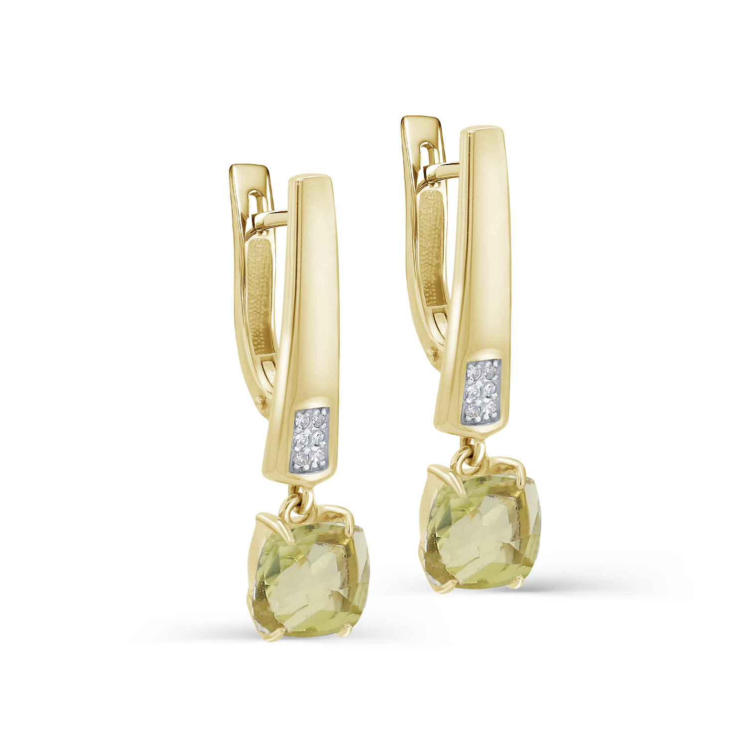 Эти изысканные серьги из золота пробы Au 585 украсят образ нежностью кварца и блеском бриллианта! Комбинированная вставка подчеркивает индивидуальность владелицы, а благородство желтого золота символизирует статус и безупречный вкус. Долговечность, красота и стиль – ваши незаменимые спутники при выборе драгоценностей от нашего бренда!