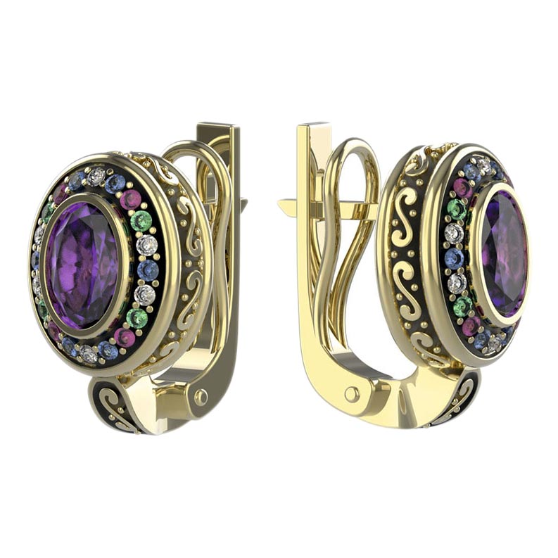 Привлеките внимание к своей красоте элегантными золотыми серьгами с драгоценными камнями! В ассортименте аметисты, бриллианты, изумруды, рубины и сапфиры — каждый камень подчеркивает индивидуальность и статус. Выглядите роскошно ежедневно, демонстрируя изысканный вкус и безупречный стиль. Наслаждайтесь комфортом ношения золота пробы Au 585. Выбирайте идеальную пару серег уже сегодня!
